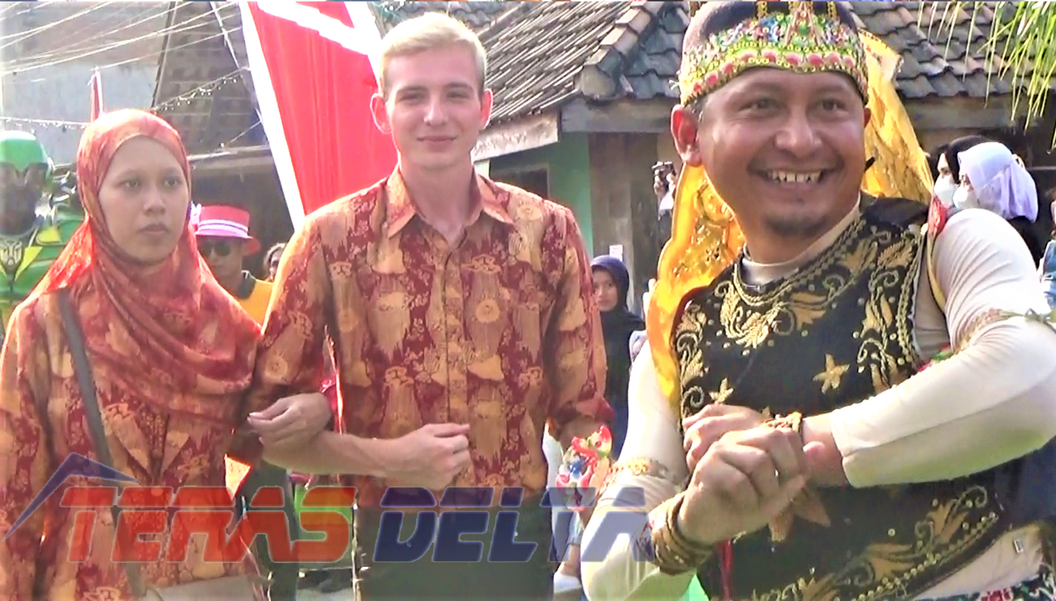 Sidoarjo.Terasdelta – Satu warga asing asal London terpukau dengan Budaya yang dimiliki Bangsa Indonesia saat mengikuti Parada Recycle Budaya di Rukun Warga (RW) 05 Tebel Tengah Desa Tebel Kecamatan Gedangan Kabupaten Sidoarjo. Minggu (27/8/23) Sore.